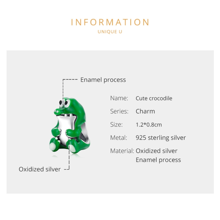 S925 Sterling Silver Cute Crocodile Beads DIY Bracelet Necklace Accessories