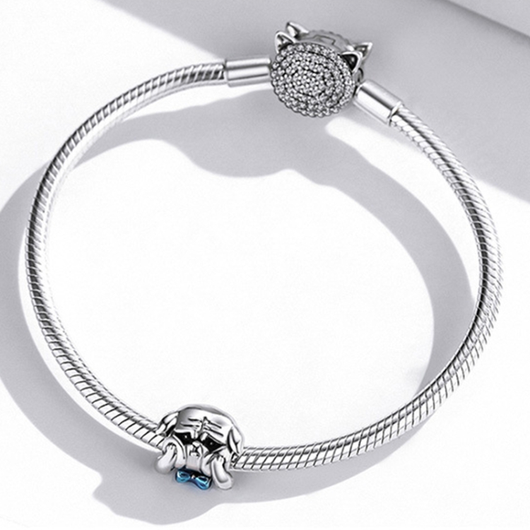 S925 Sterling Silver Cute Dog Beads DIY Bracelet Necklace Accessories