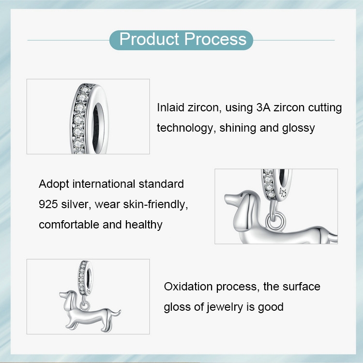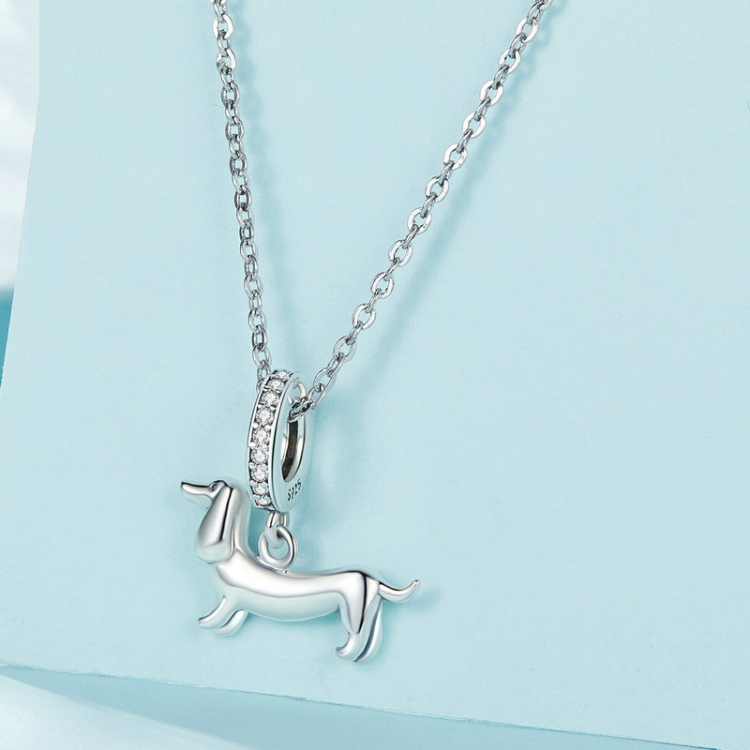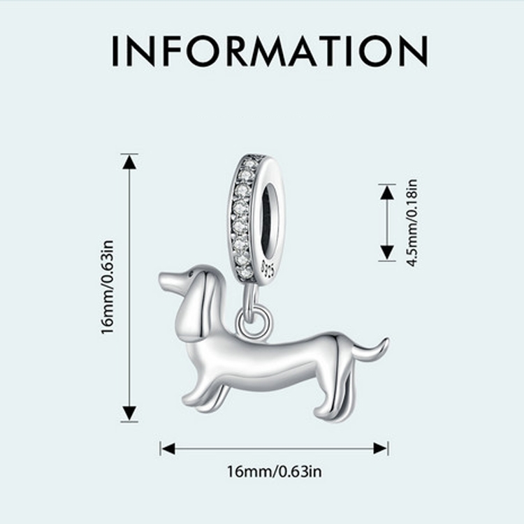 S925 Sterling Silver Cute Little Dachshund Pendant DIY Beaded Bracelet Accessories