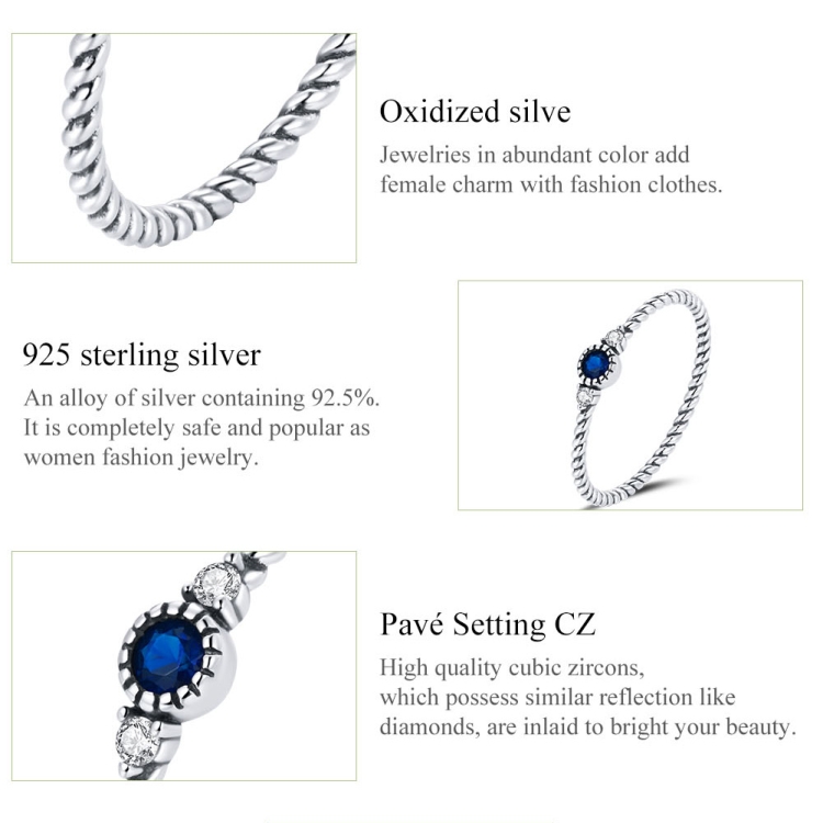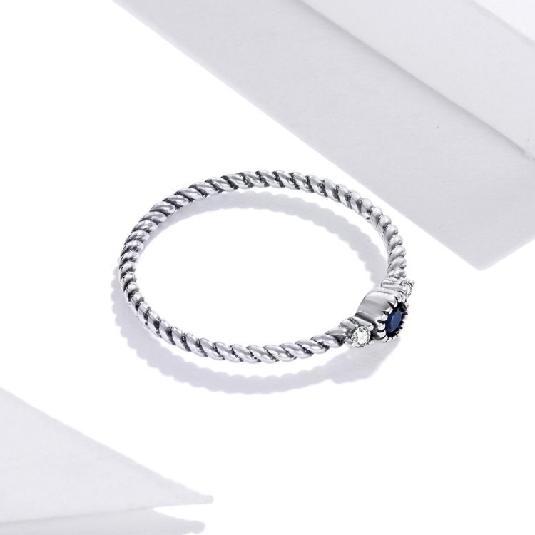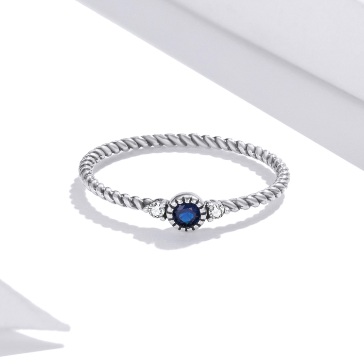 S925 Sterling Silver Dark Blue Zircon Platinum Plated Twist Texture Women Ring