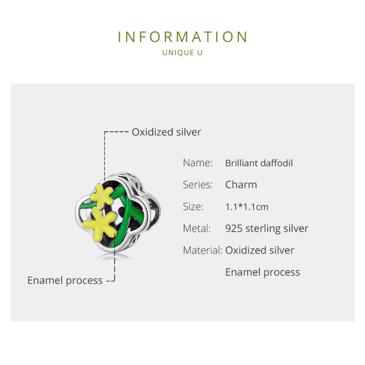 S925 Sterling Silver Delicate Daffodil Beads DIY Bracelet Necklace Accessories
