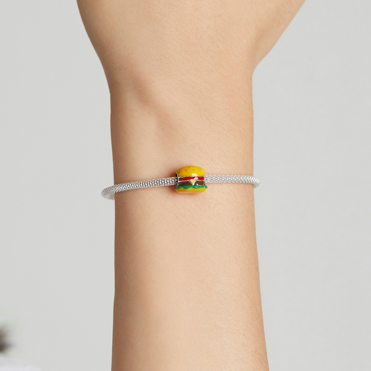 S925 Sterling Silver Delicious Burger Beads DIY Bracelet Necklace Accessories