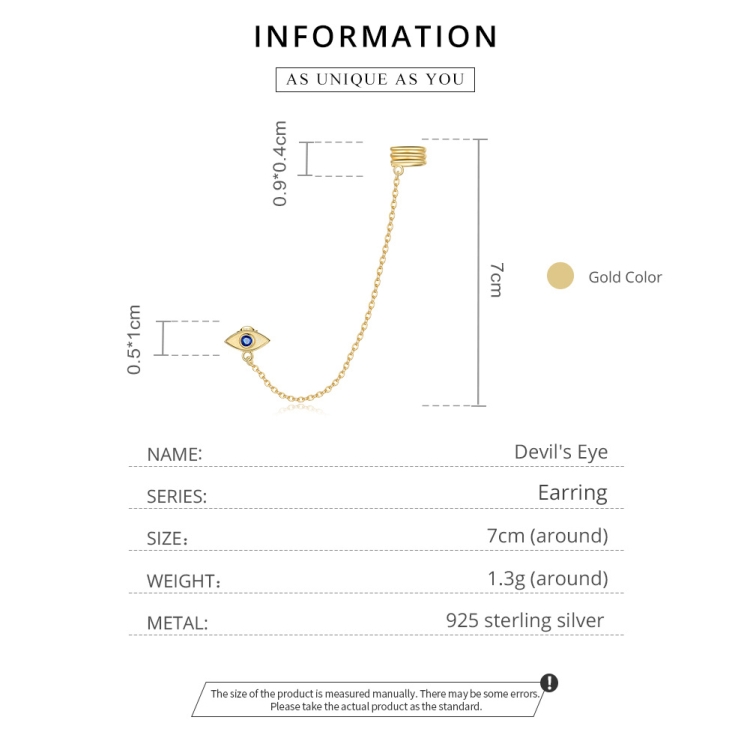 7. Eye height and width: 0.5x1cm, ear clip height and width: 0.9×0.4cm, chain length: 7cm
