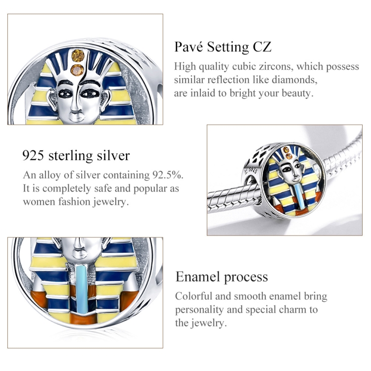 S925 Sterling Silver Egyptian Pharaoh Beads DIY Bracelet Necklace Accessories