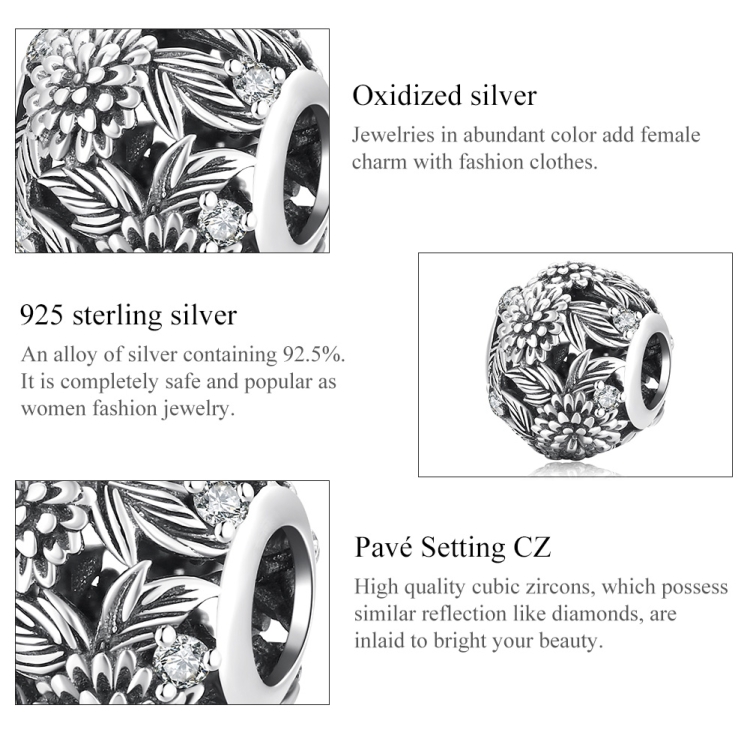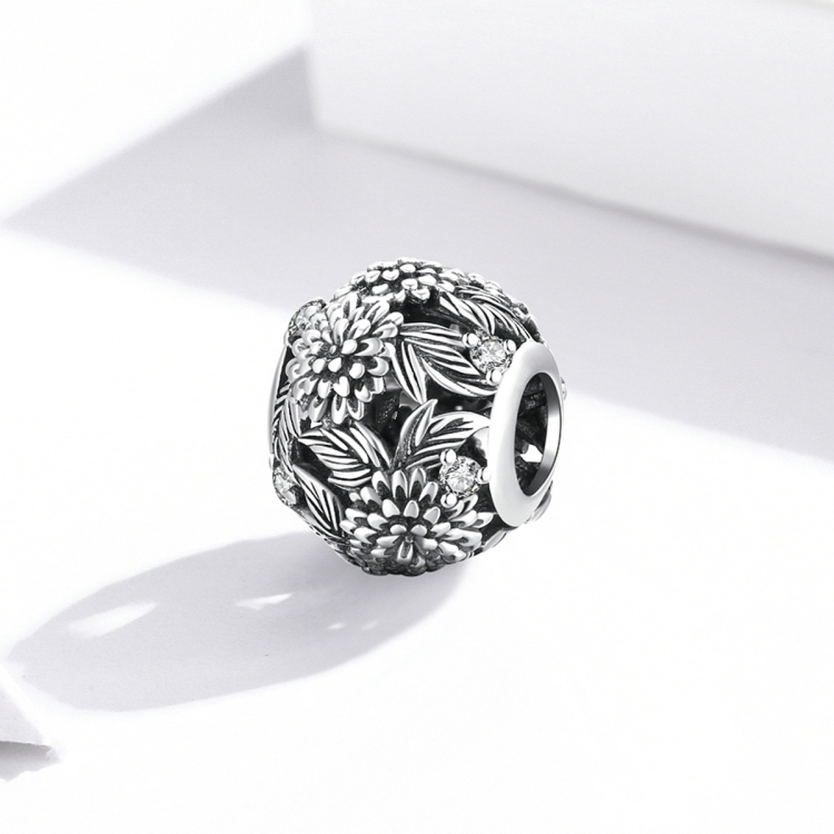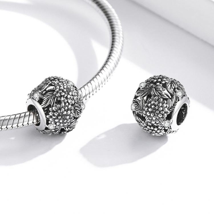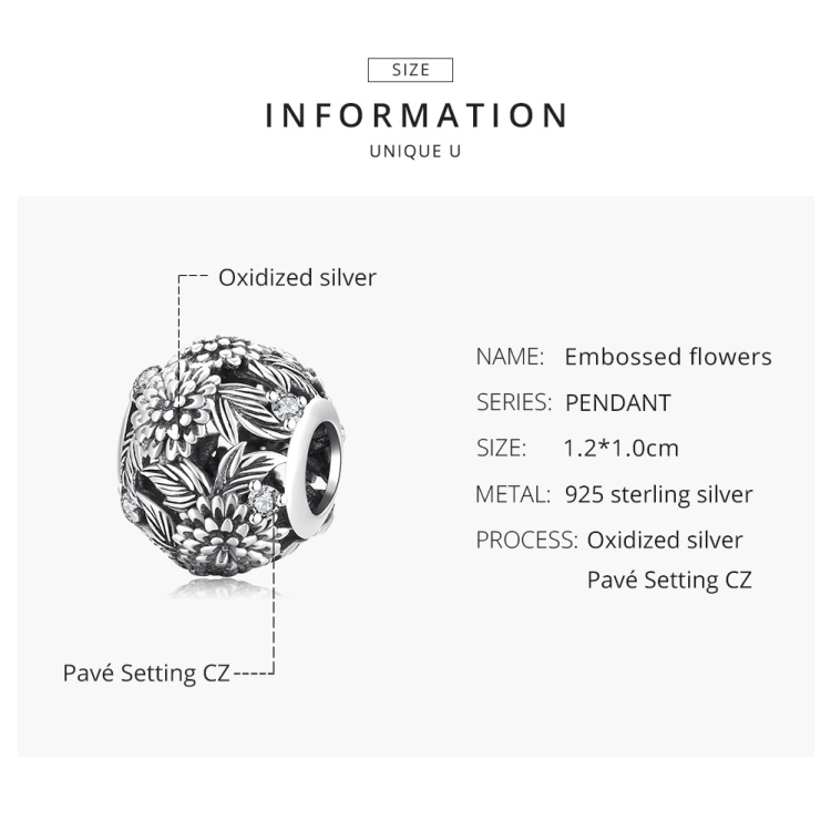S925 Sterling Silver Embossed Flowers Beads DIY Bracelet Necklace Accessories