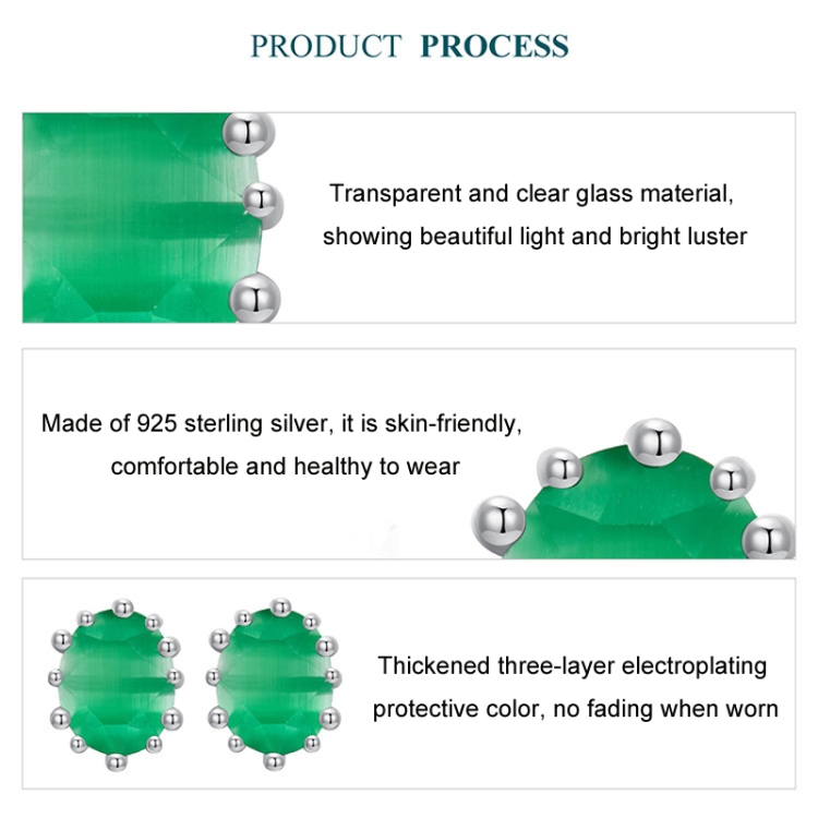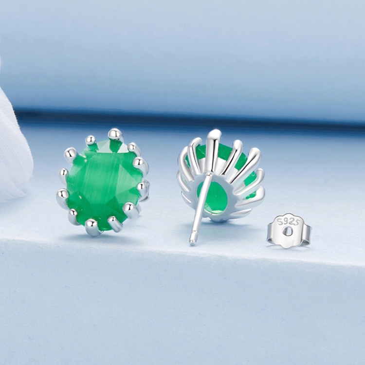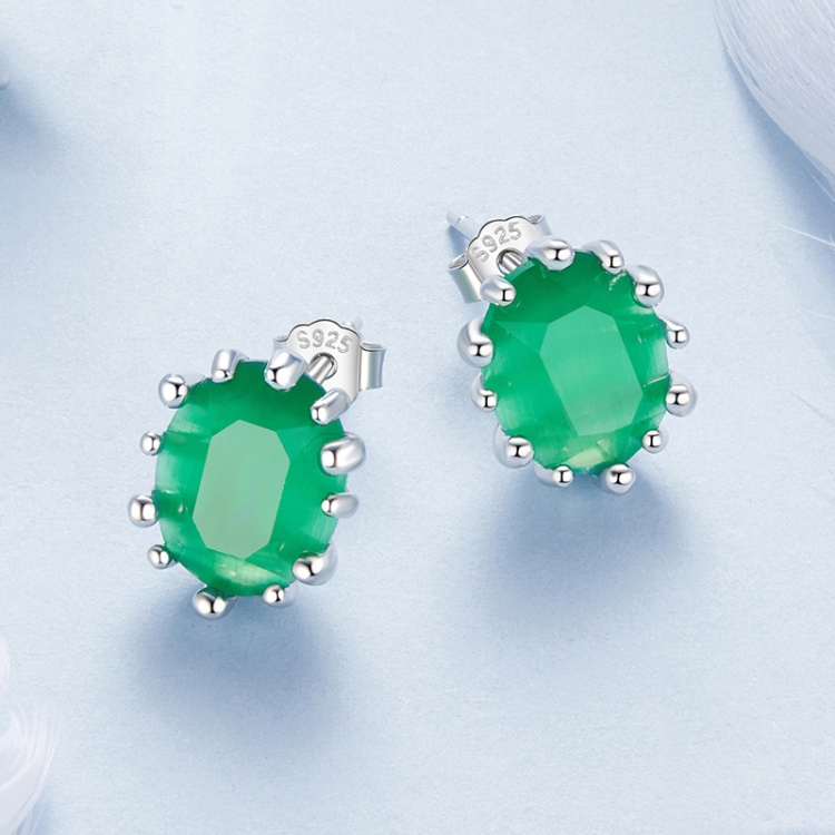 S925 Sterling Silver Emerald Cat Eye Glass Earrings