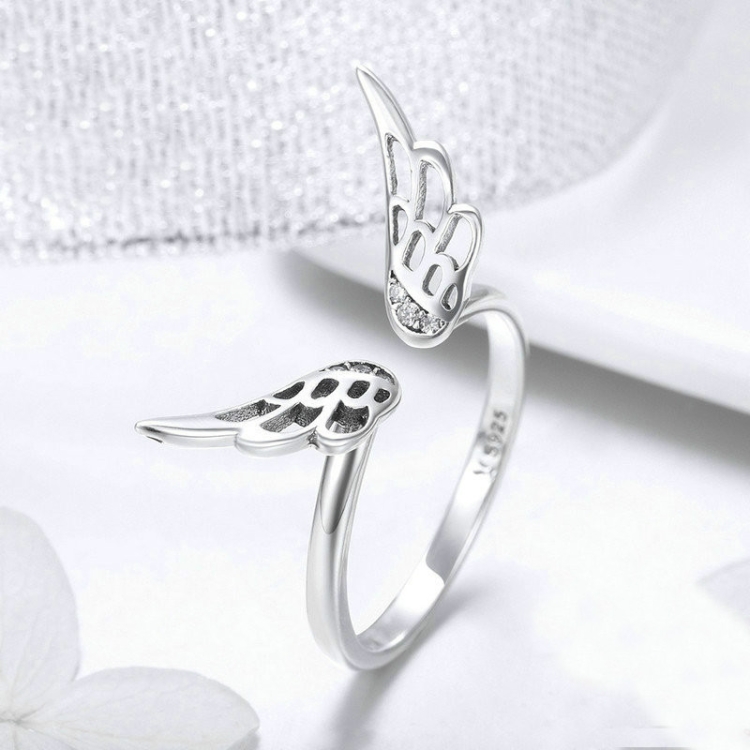 S925 Sterling Silver Fairy Wing Ring Girls Open Ring