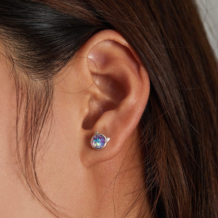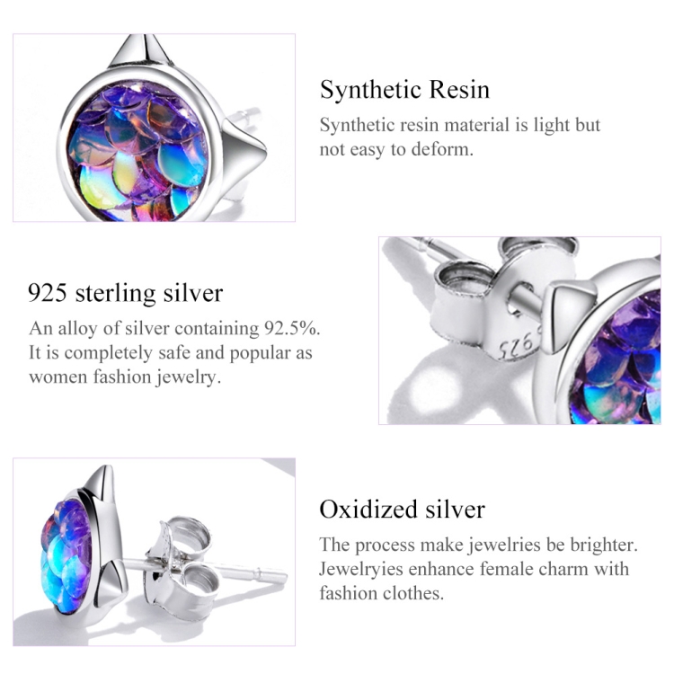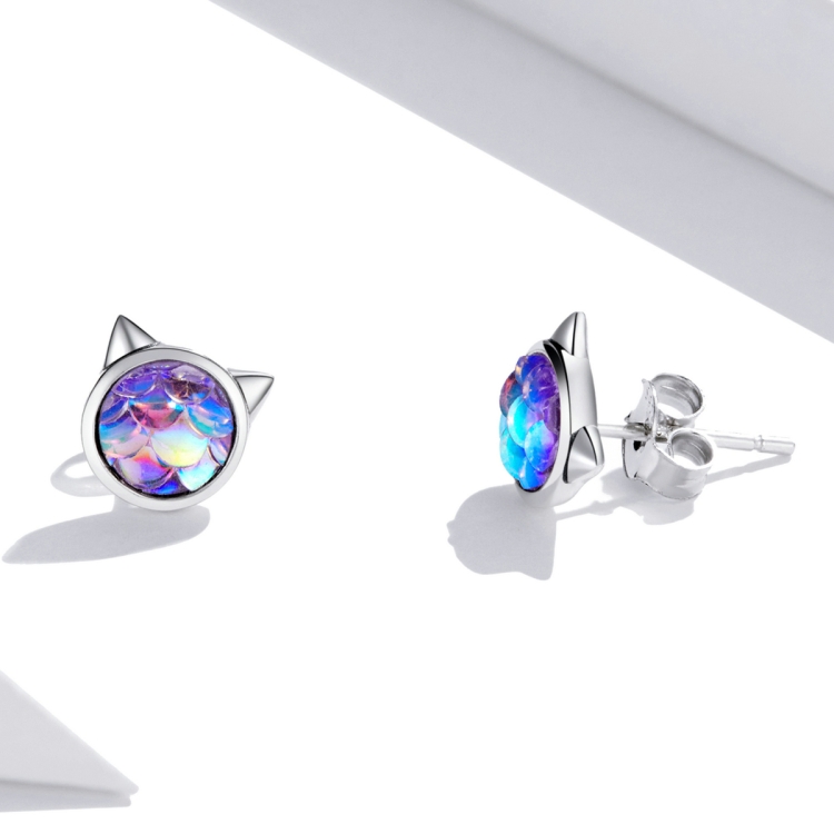 S925 Sterling Silver Fish Scale Cat Head Ear Studs Women Earrings
