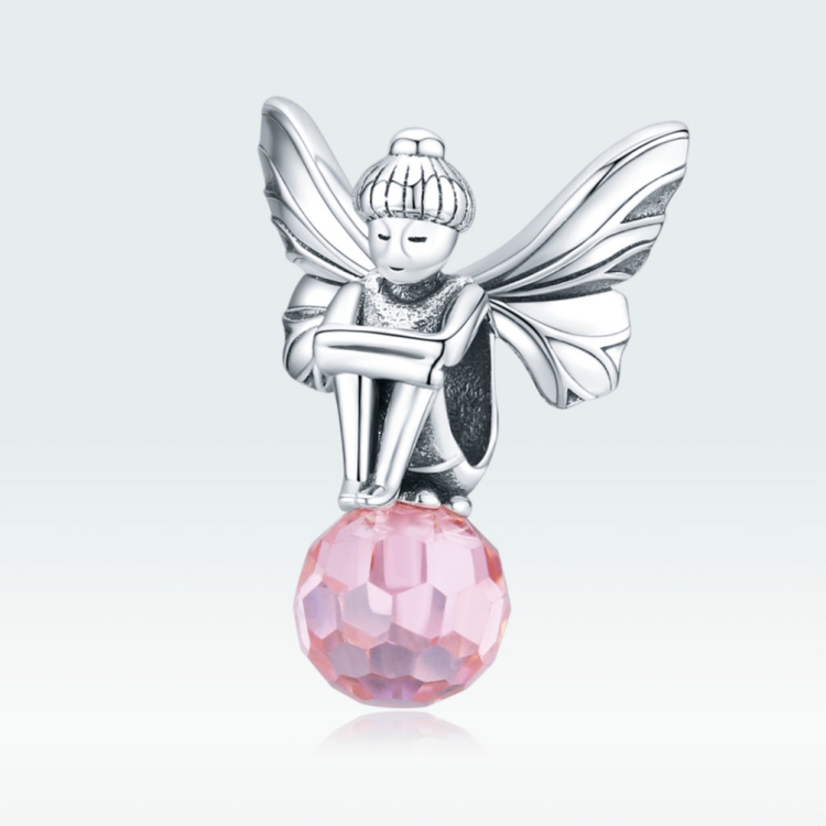 S925 Sterling Silver Flower Fairy Beaded Pink Glass Zircon Loose Beads DIY Bracelet Accessories