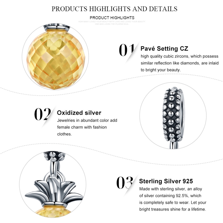 S925 Sterling Silver Fruit Series Pineapple Love Pendant DIY Bracelet Accessories