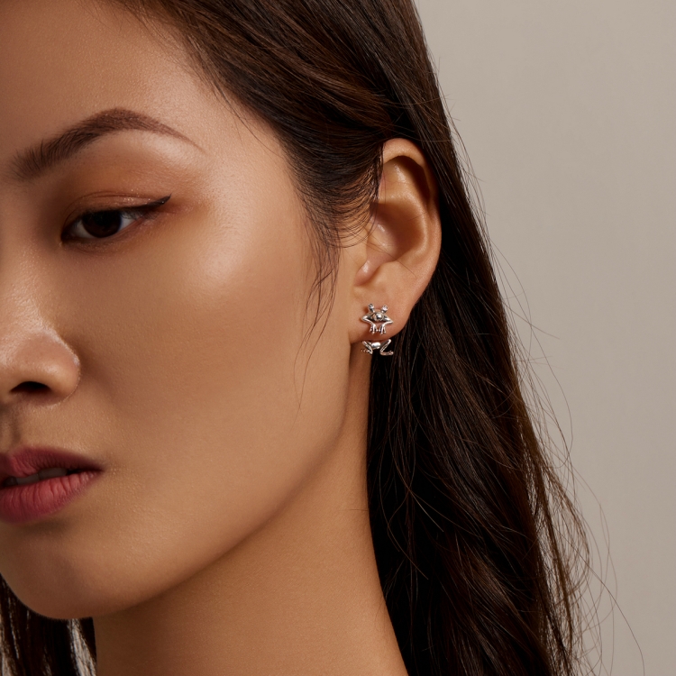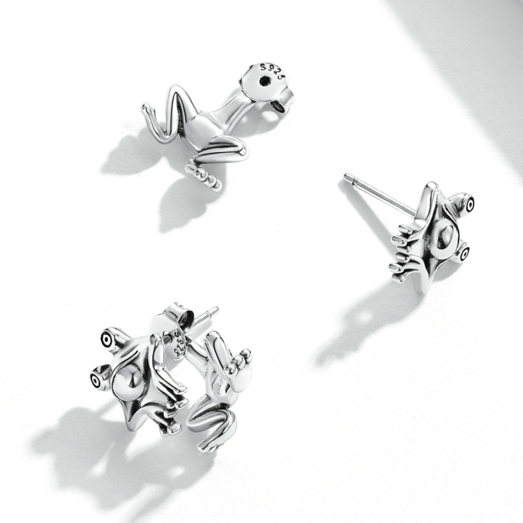 S925 Sterling Silver Fun Frog Ear Studs Women Earrings