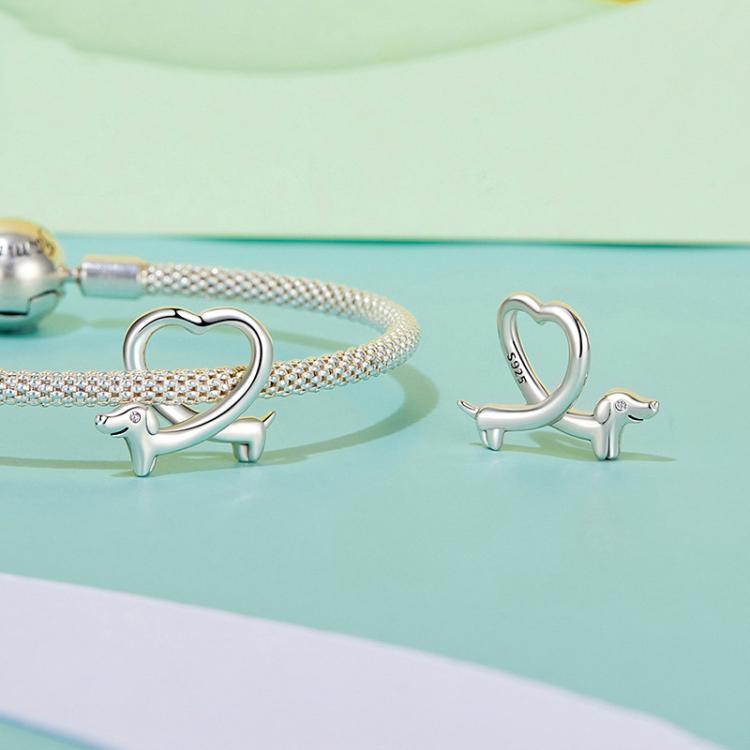 S925 Sterling Silver Funny Dachshund Beads Jewelry Animal Accessories