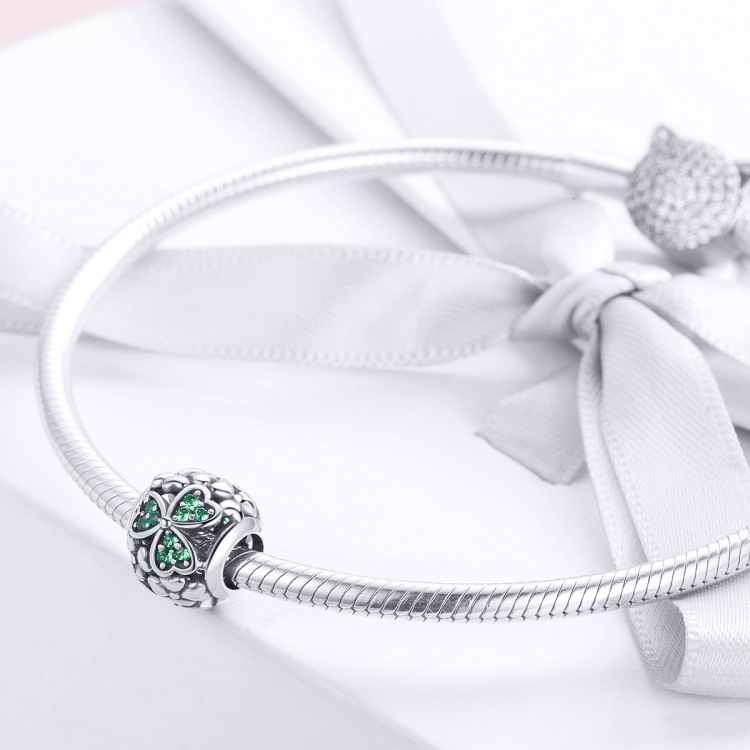 S925 Sterling Silver Green Plant Clover Bead DIY Bracelet Accessories