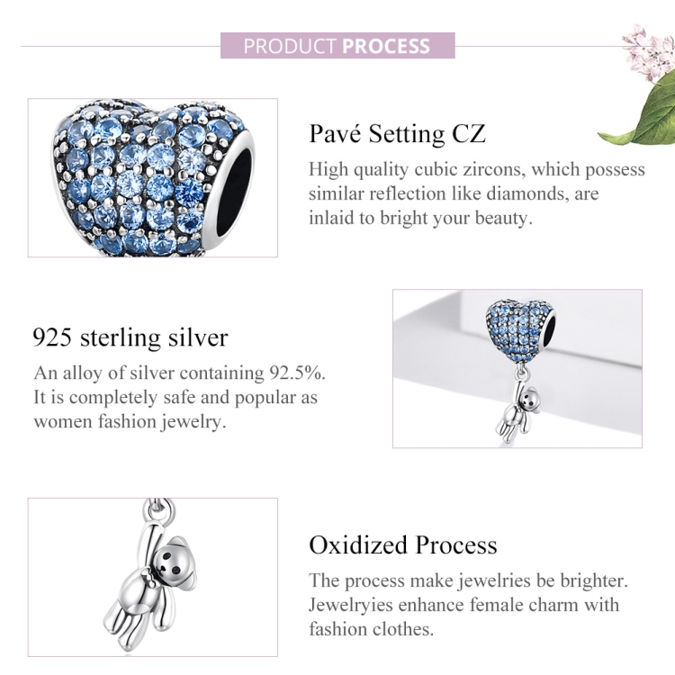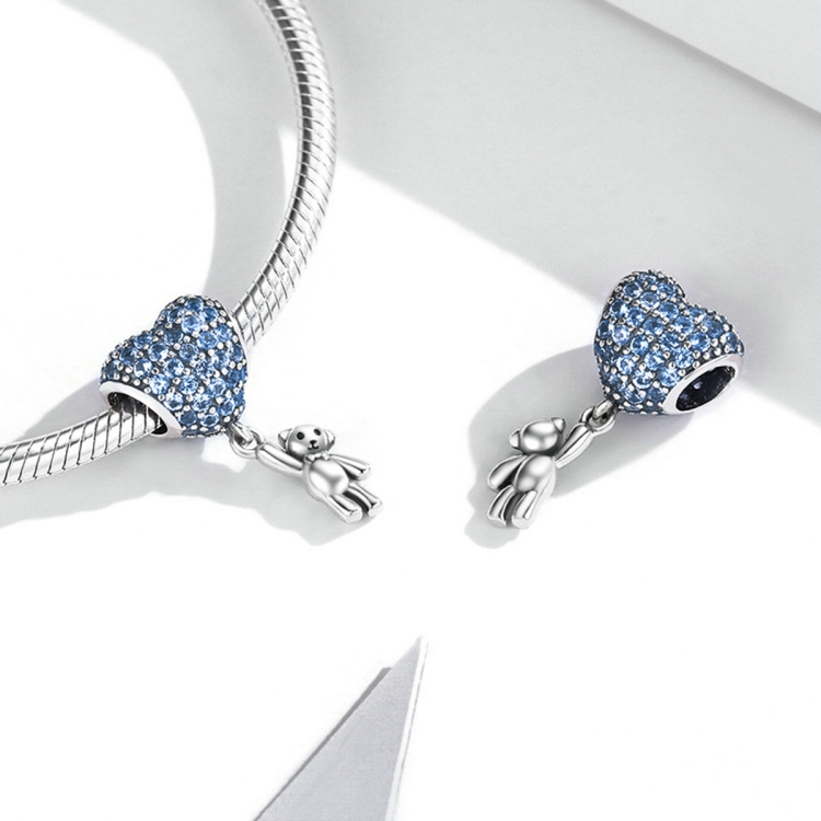 S925 Sterling Silver Heart Balloon Bear Pendant DIY Bracelet Necklace Accessories