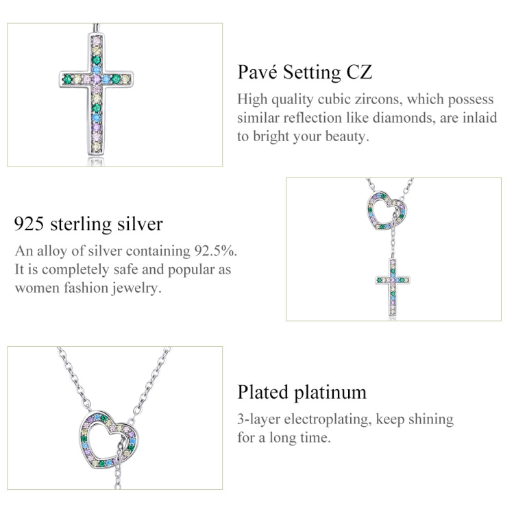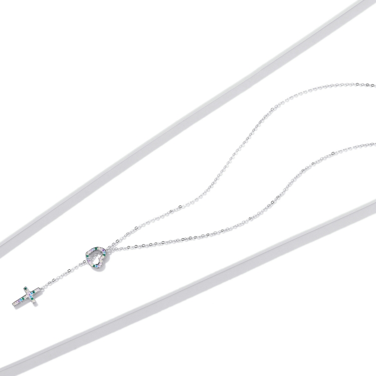 S925 Sterling Silver Heart Cross Women Nacklace Jewelry
