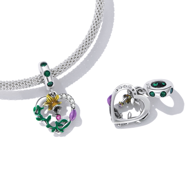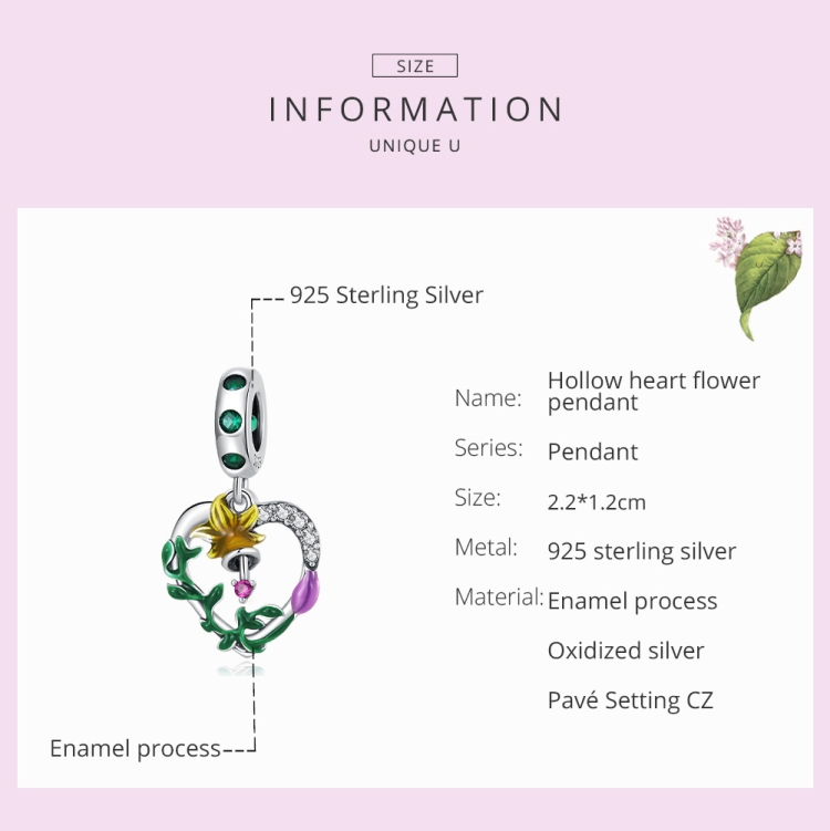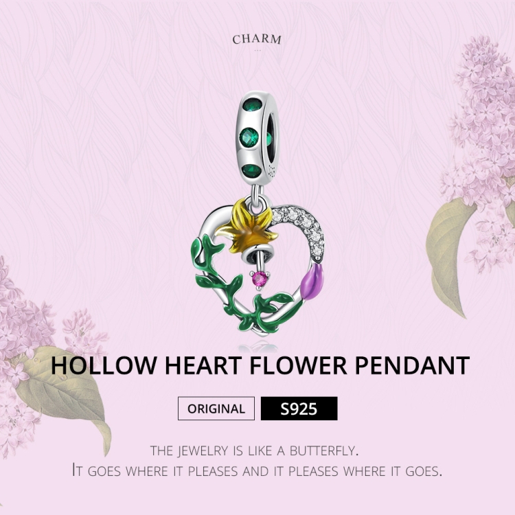 S925 Sterling Silver Heart Flower Pendant DIY Bracelet Necklace Accessories