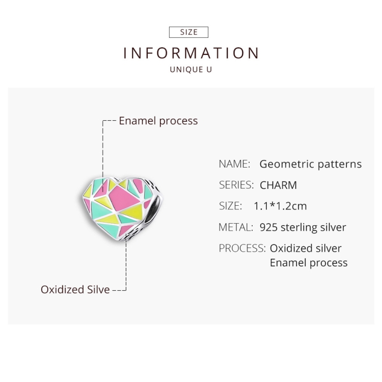 S925 Sterling Silver Heart Geometry Beads DIY Bracelet Necklace Accessories