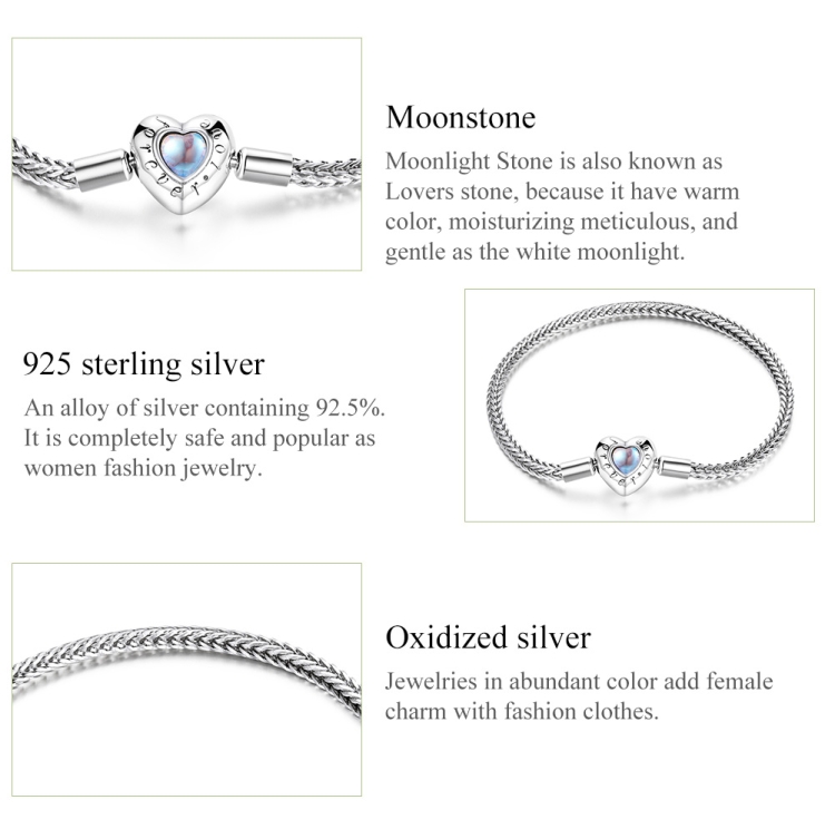 S925 Sterling Silver Heart Moonstone Bracelet Women Jewelry