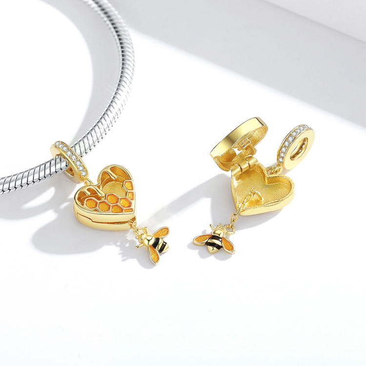 S925 Sterling Silver Heart-shape Honeycomb Bee Pendant DIY Bracelet Necklace Accessories
