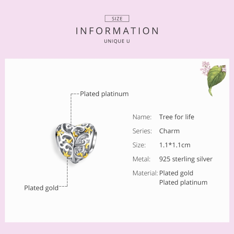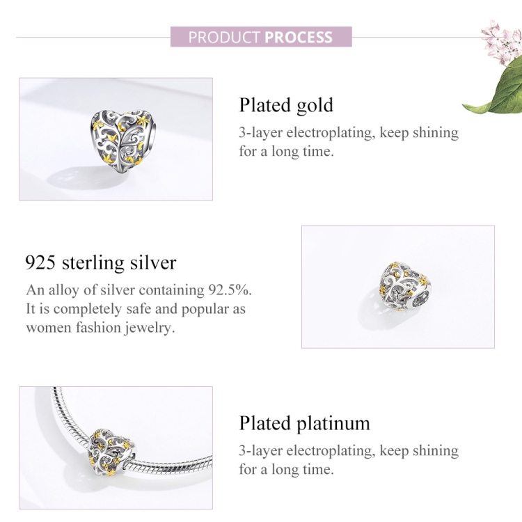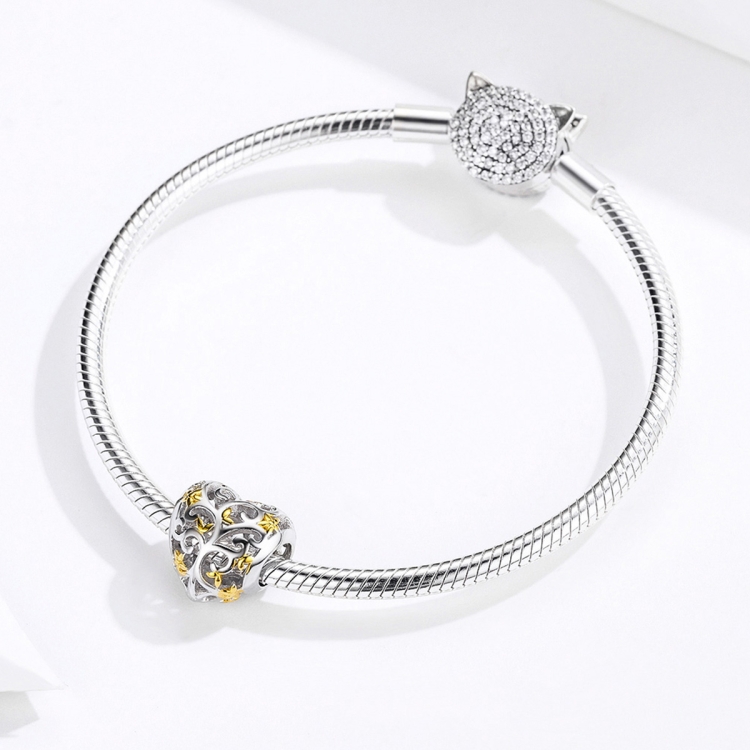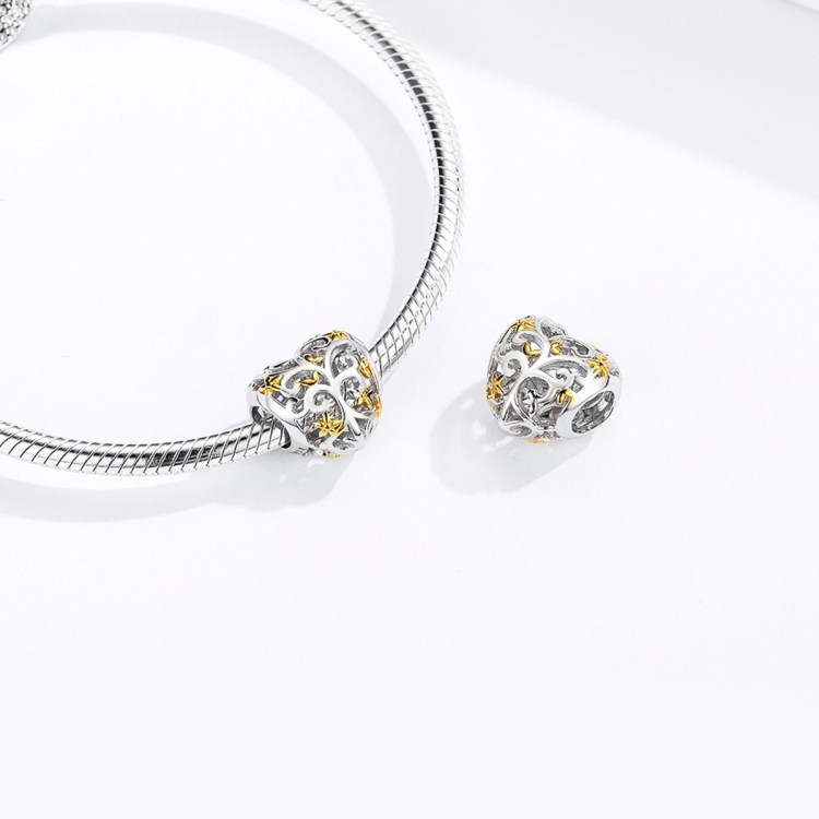 S925 Sterling Silver Heart-shaped Hollow Tree Of Life Beads DIY Bracelet Accessories