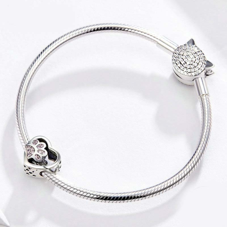 S925 Sterling Silver Heart Shaped Pet Paw Print Beads DIY Bracelet Beaded Accessories