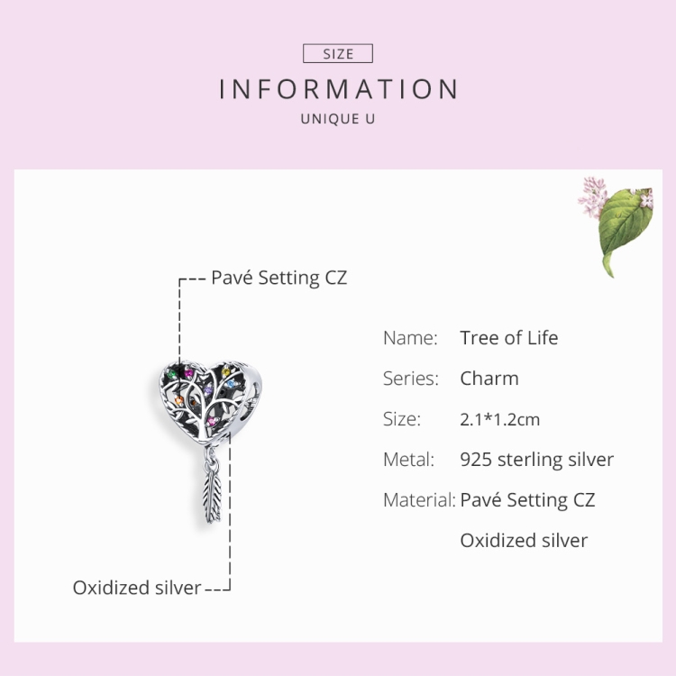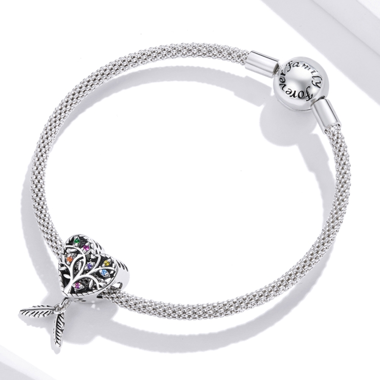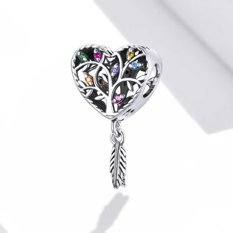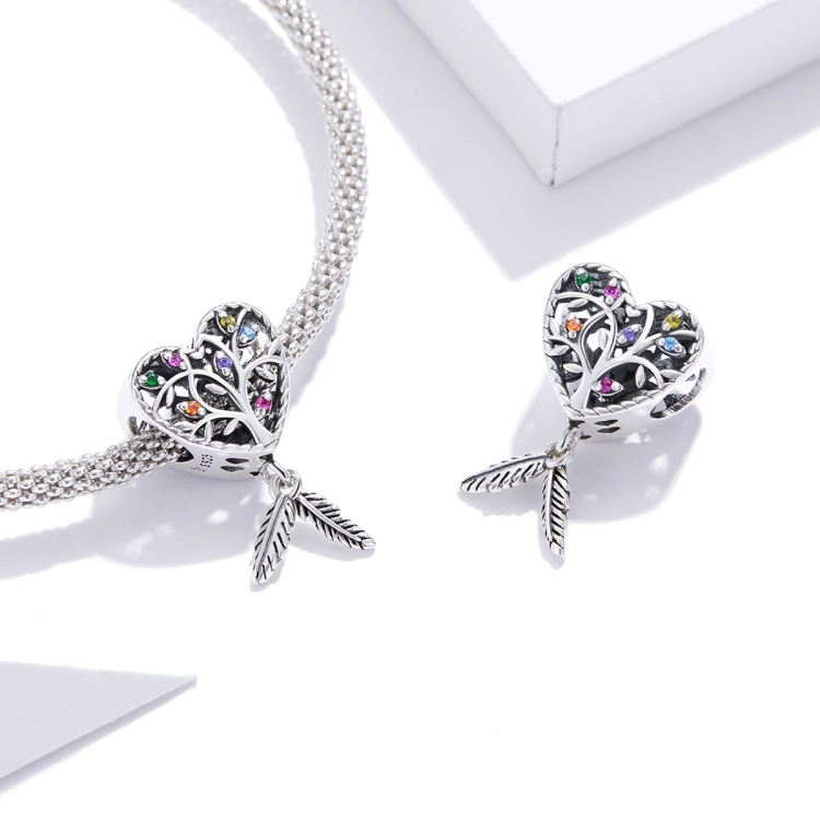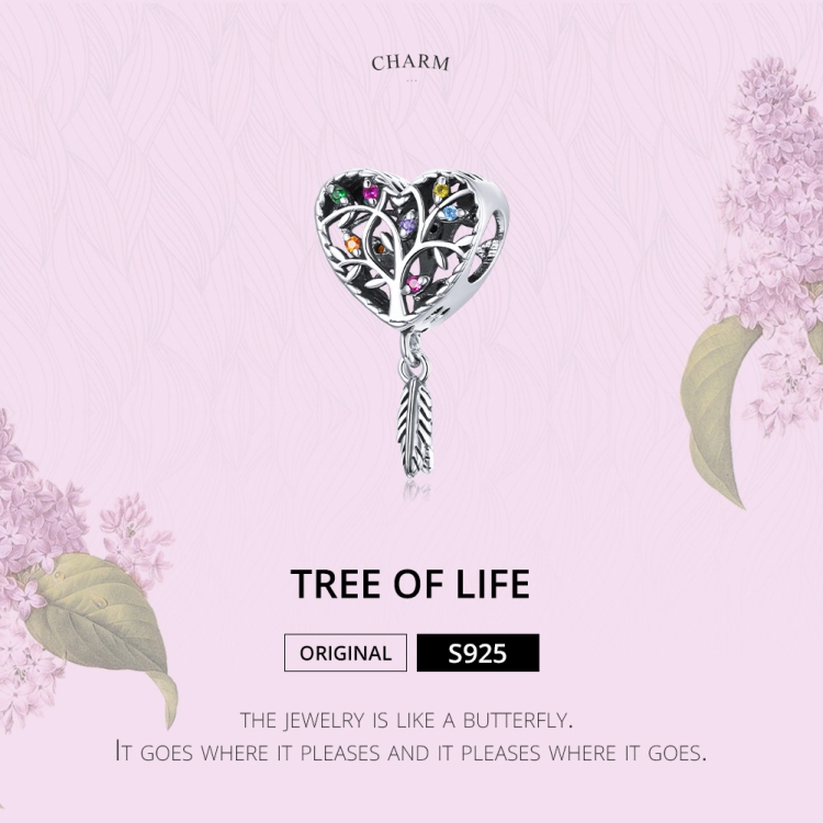 S925 Sterling Silver Heart-shaped Tree Of Life Beads DIY Bracelet Necklace Accessories
