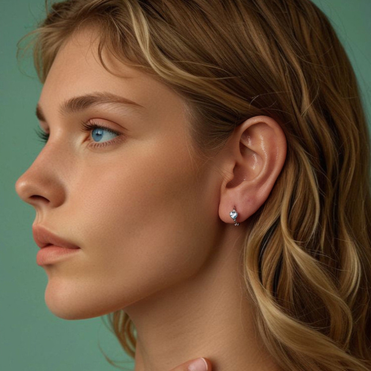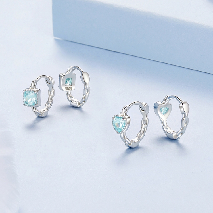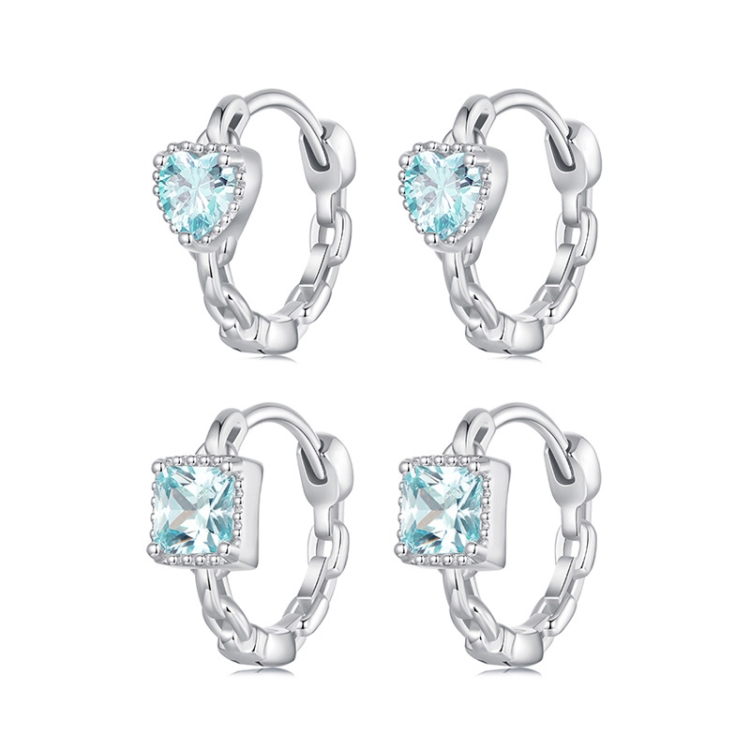 S925 Sterling Silver Heart Square Earrings Aquamarine Zircon Earrings