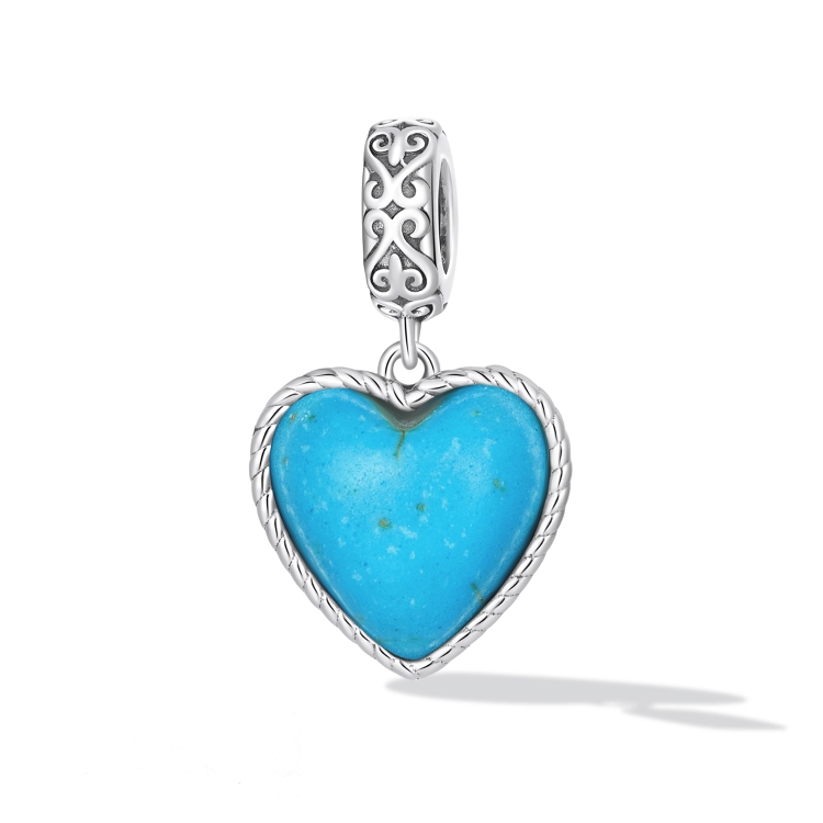S925 Sterling Silver Heart Turquoise Pendant DIY Bracelet Necklace Accessories