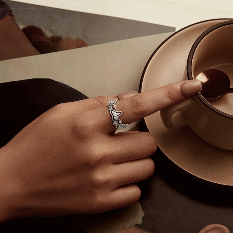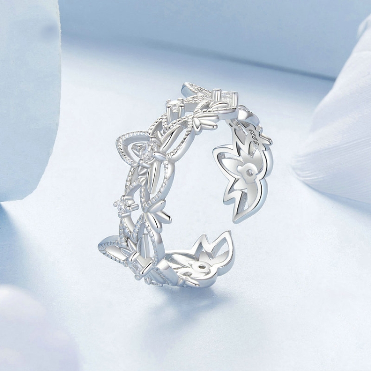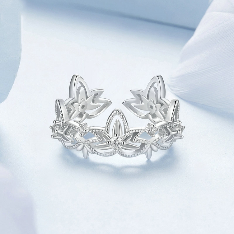S925 Sterling Silver Hollow Lotus Open Ring Adjustable Flower Ring