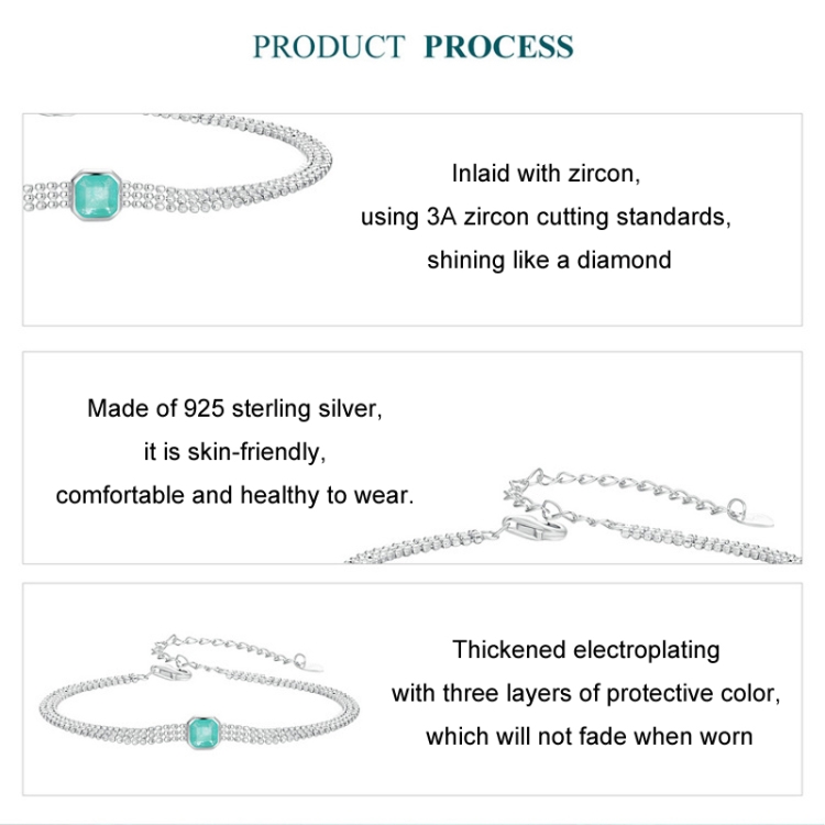 S925 Sterling Silver Ice Flower Transparent Blue-green Zircon Bracelet