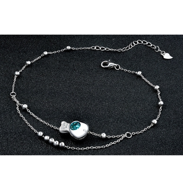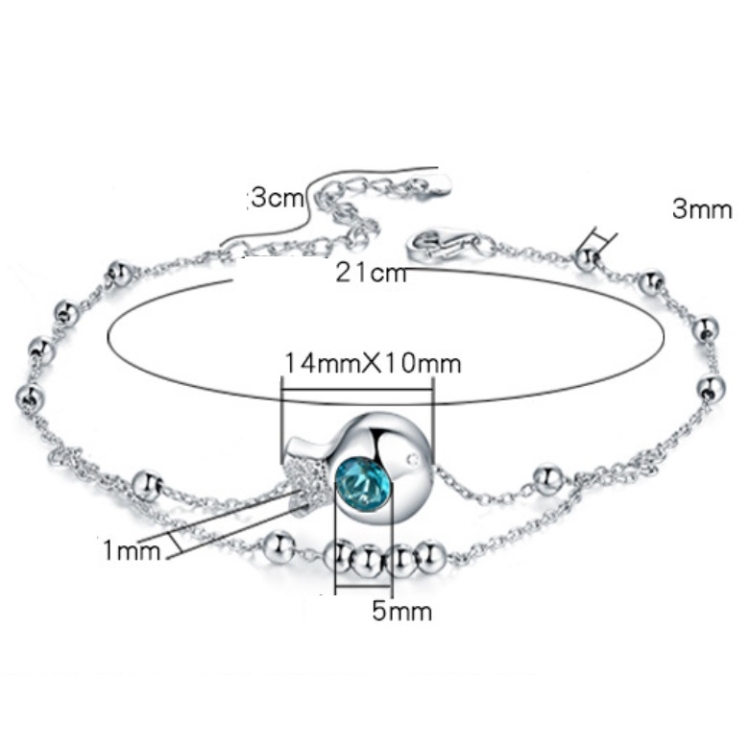 S925 Sterling Silver Inlaid Zircon Girls Foot Ornaments Double Round Bead Anklet