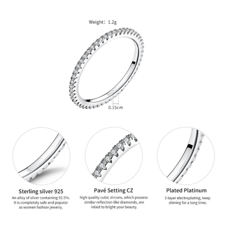 S925 Sterling Silver Ladies Fashion Ring Diamond Simple Ring