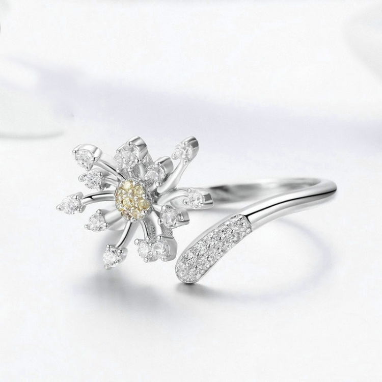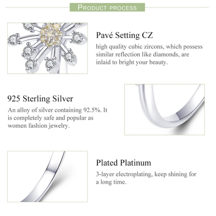 S925 Sterling Silver Ladies Ring Dandelion Love Diamond Ring