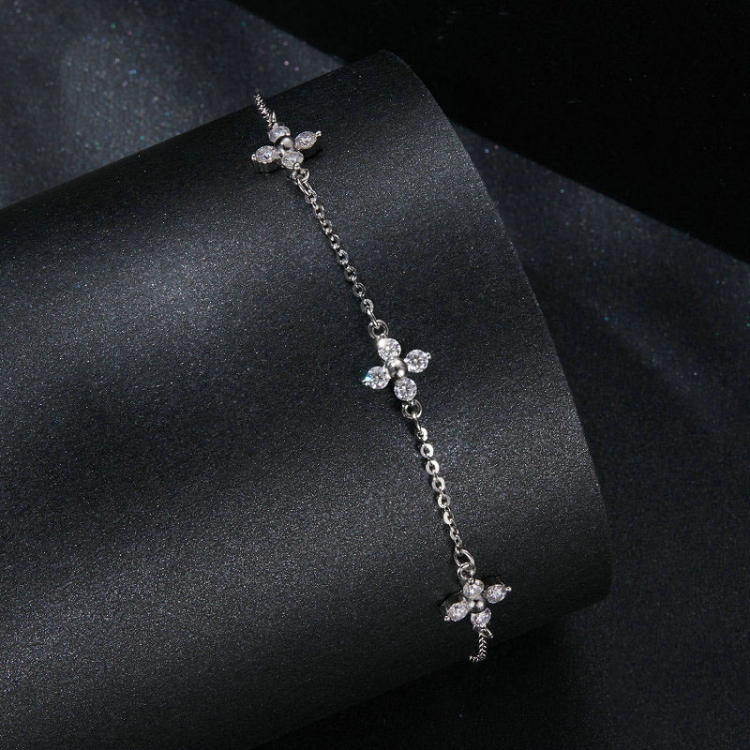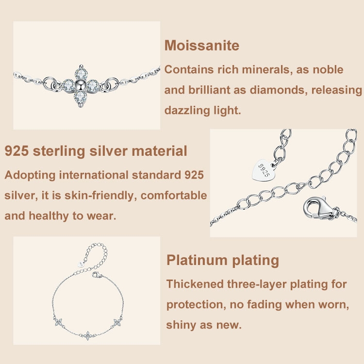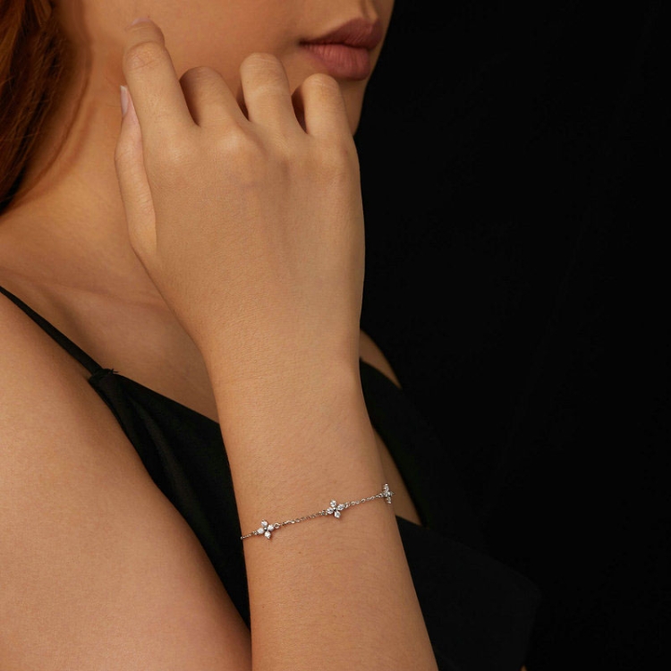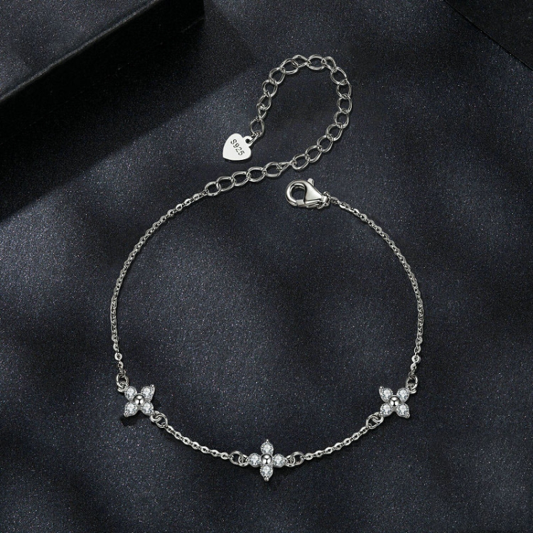 S925 Sterling Silver Lucky Four-leaf Clover Shining Moissanite Bracelet