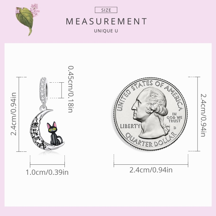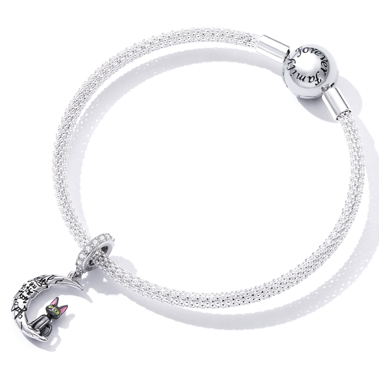 S925 Sterling Silver Moon Black Cat Pendant DIY Bracelet Necklace Accessories