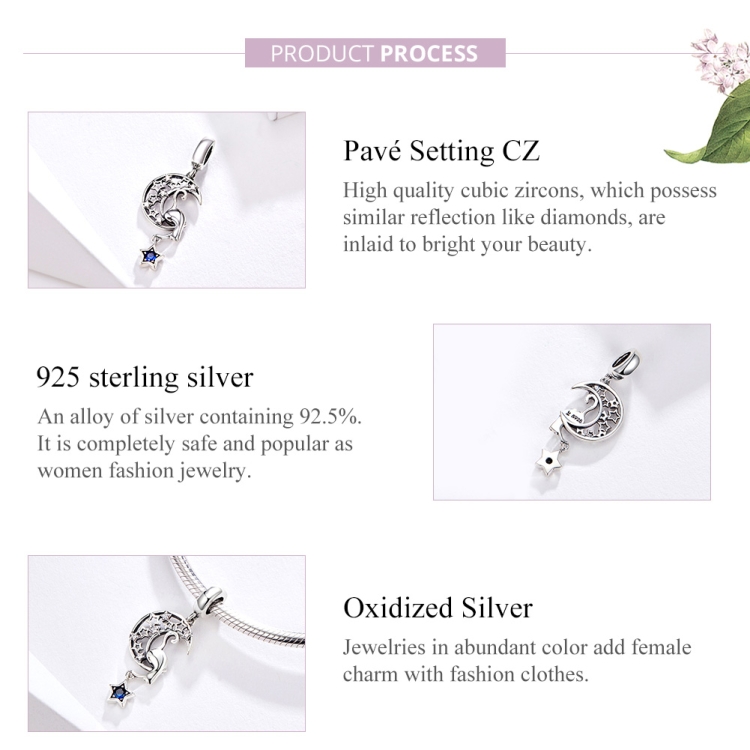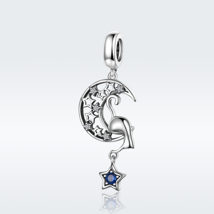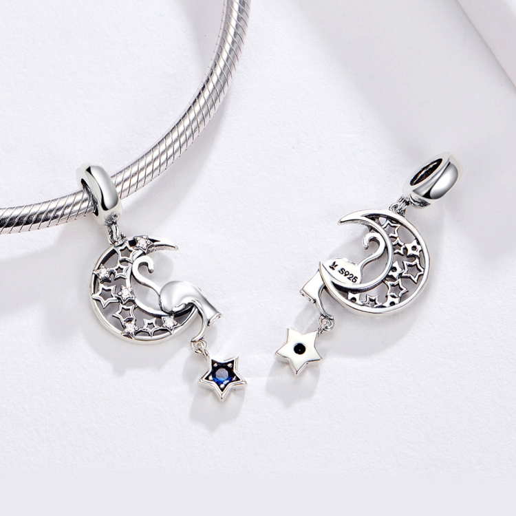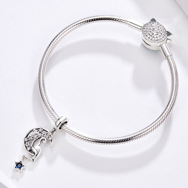 S925 Sterling Silver Moon Cat Pendant DIY Bracelet Necklace Charm
