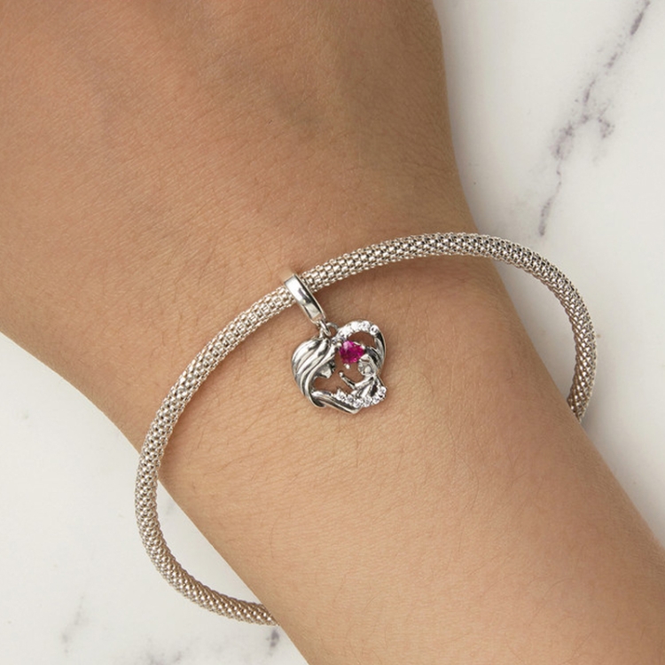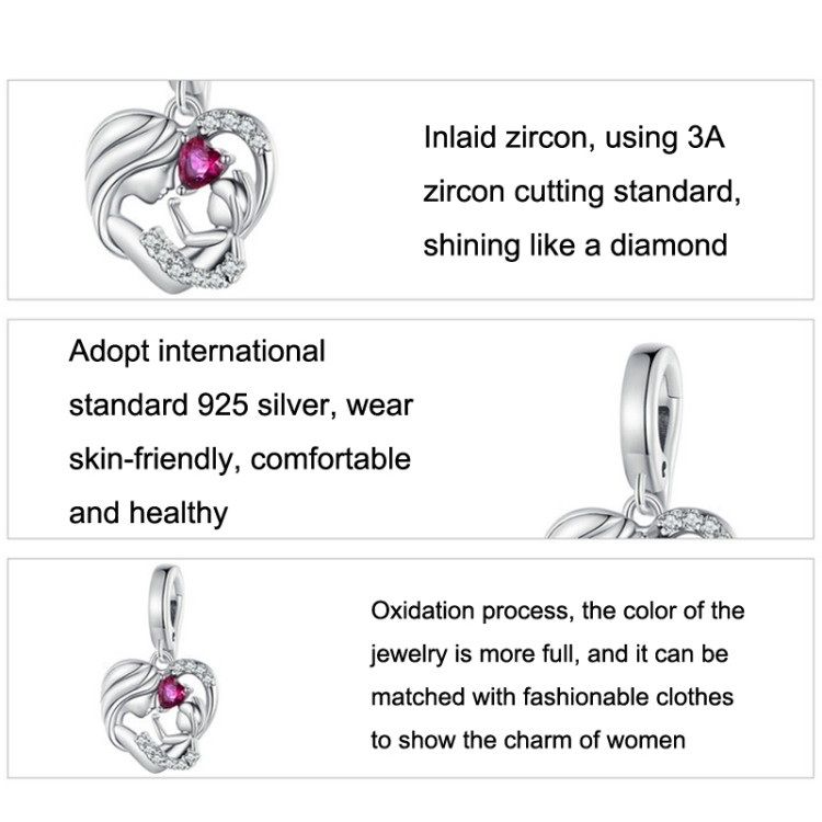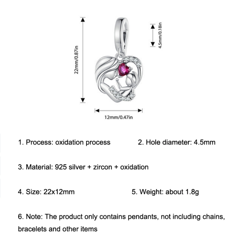 S925 Sterling Silver Mother and Child Hug Love Pendant DIY Bracelet Heart Shaped Accessories
