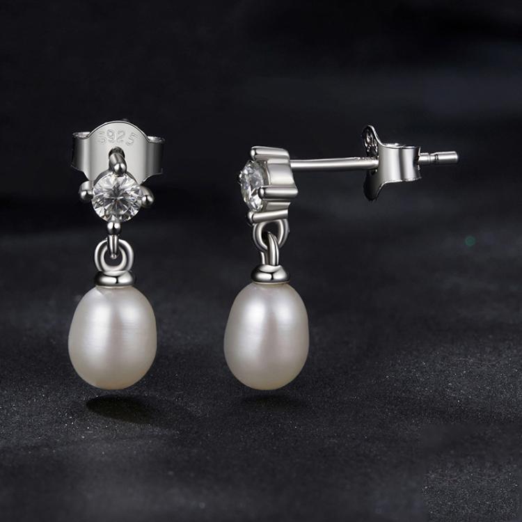 S925 Sterling Silver Natural Freshwater Pearl Moissanite Earrings