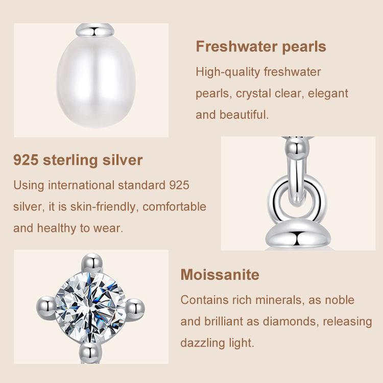 4. Material: 925 silver + natural freshwater pearls + moissanite + electroplated platinum