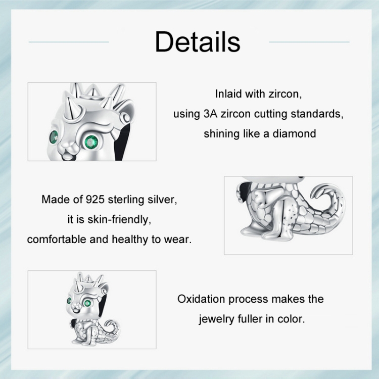 S925 Sterling Silver New Year Cute Little Dragon DIY Beads
