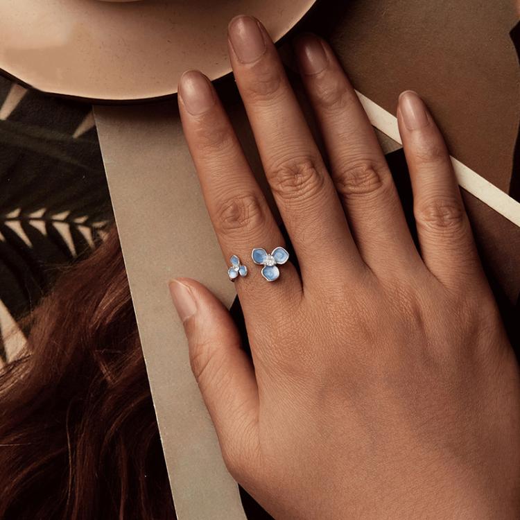 S925 Sterling Silver Oil Drop Craft Flower Opening Adjustable Ring