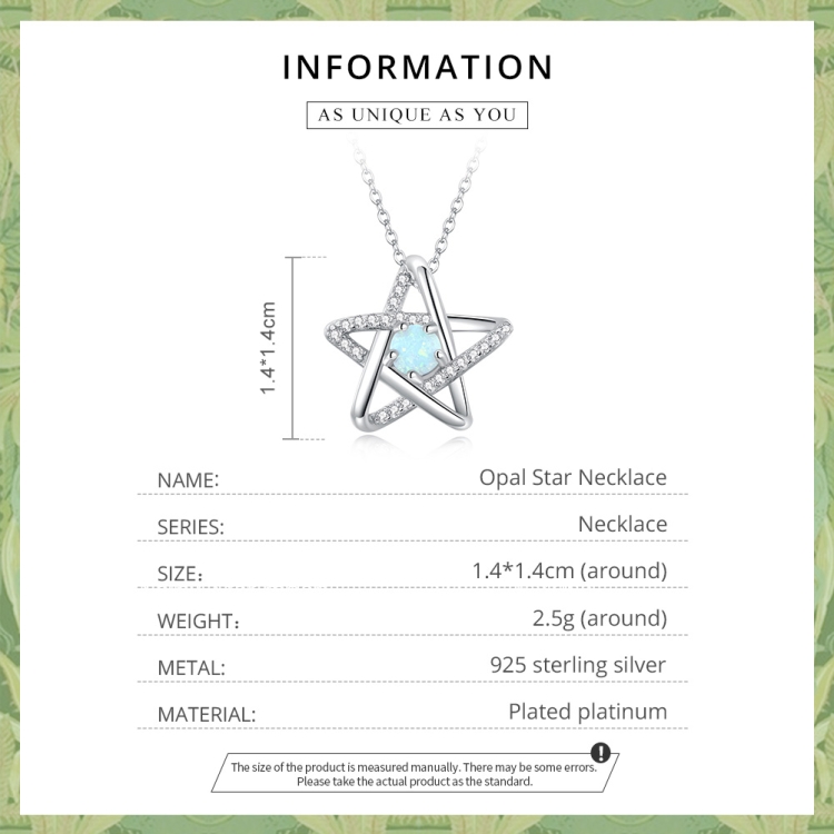 S925 Sterling Silver Opal Star Women Nacklace Jewelry