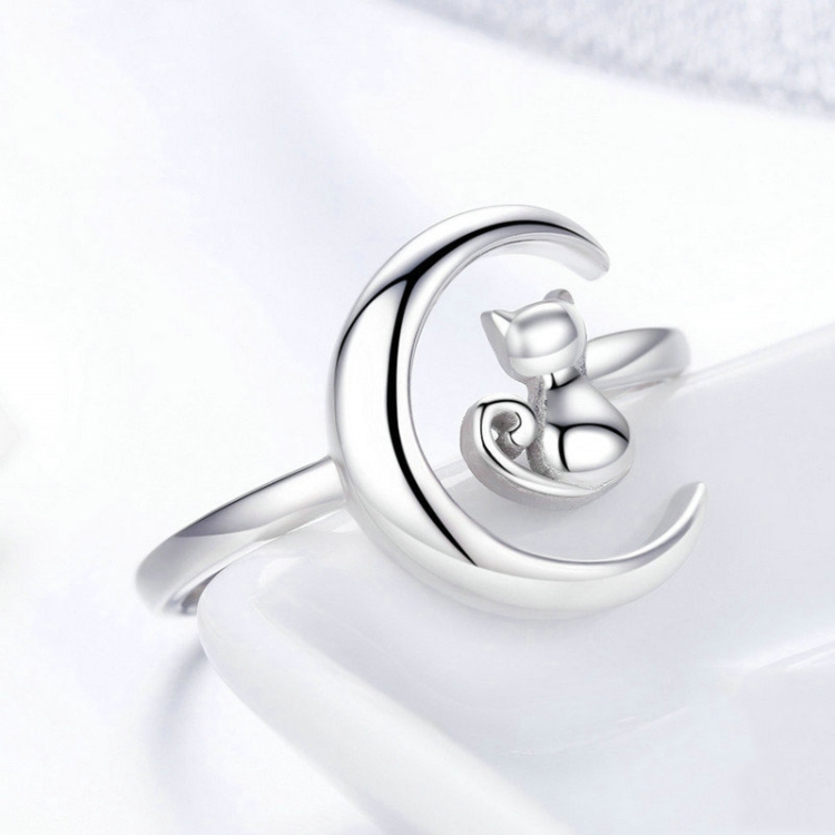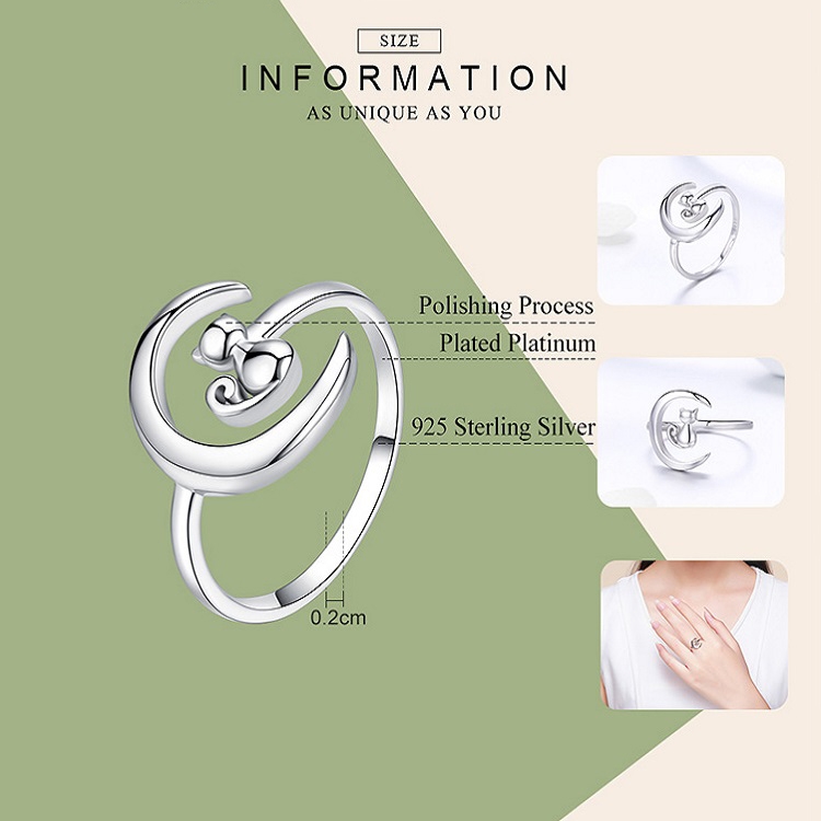 Be the first to review “S925 Sterling Silver Open Ring Moon Cat Female Ring”