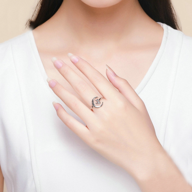 S925 Sterling Silver Open Ring Moon Cat Female Ring