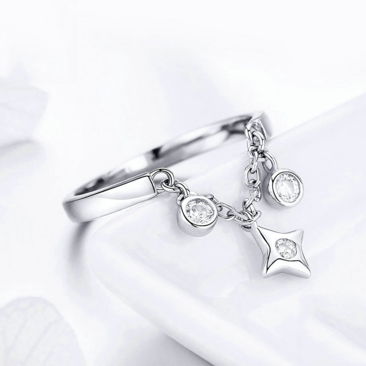 S925 Sterling Silver Open Ring Star Platinum Plated Ring