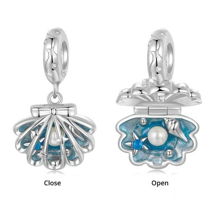 S925 Sterling Silver Openable and Closable Hollow Three-dimensional Scallop Bead Pendant