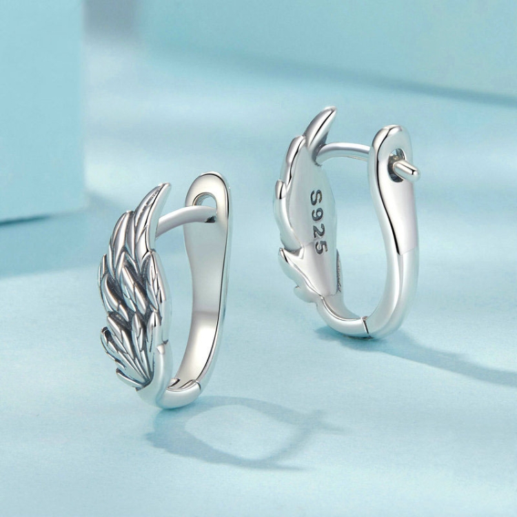 S925 Sterling Silver Oxidized Ear Buckle Wing Shape Earrings