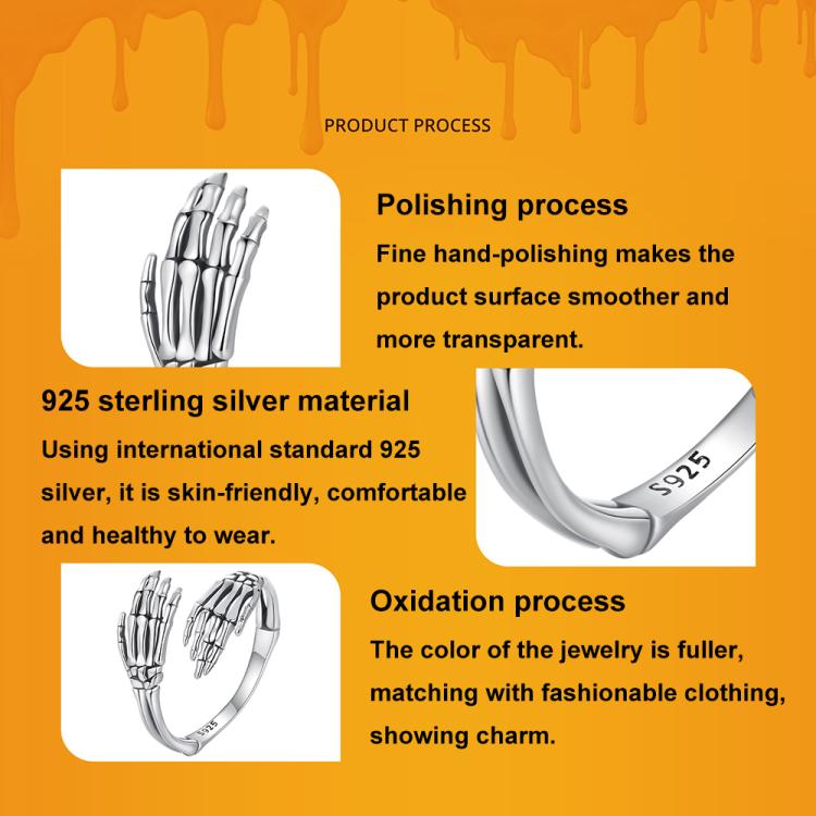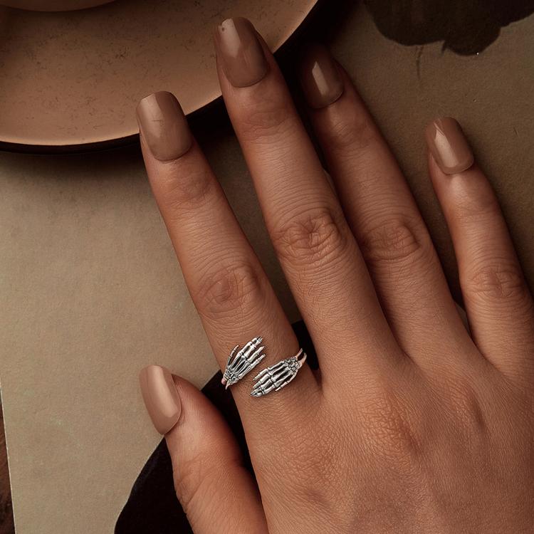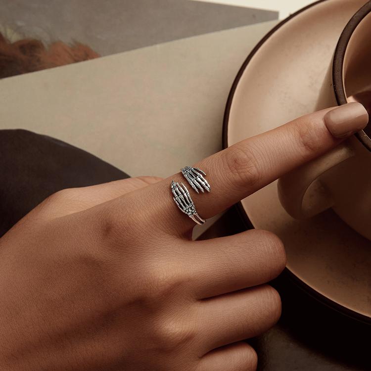 S925 Sterling Silver Oxidized Skeleton Hand Adjustable Open Ring