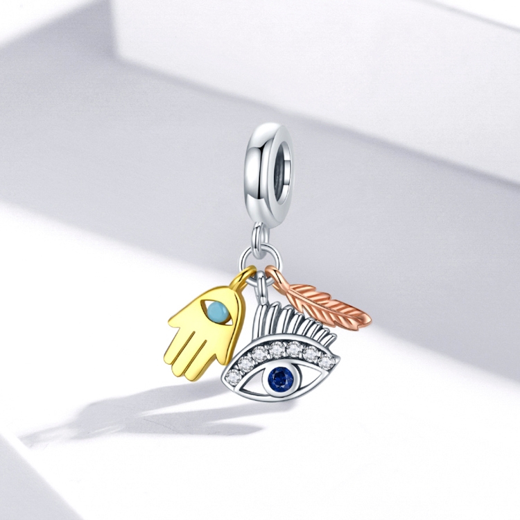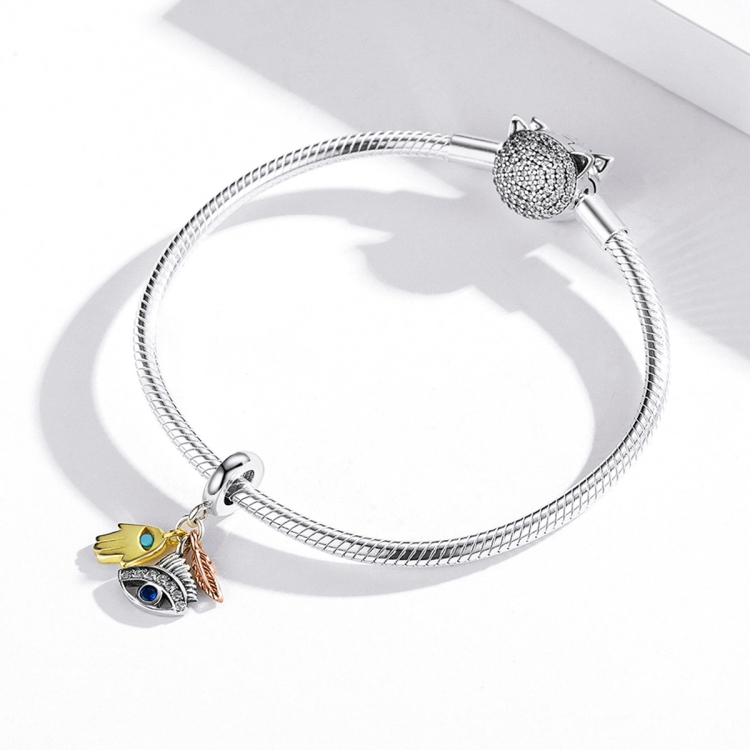 S925 Sterling Silver Palm Eye Feather Pendant DIY Bracelet Necklace Accessories