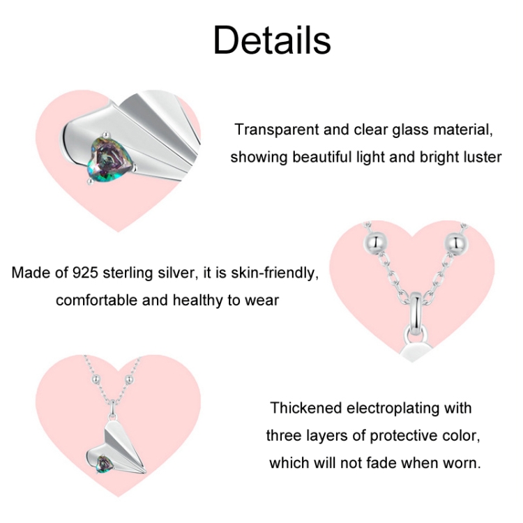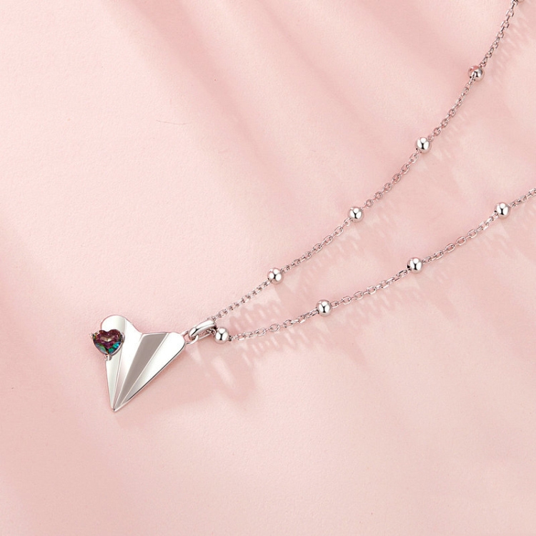 S925 Sterling Silver Paper Airplane Necklace Valentine Day Platinum-plated Jewelry